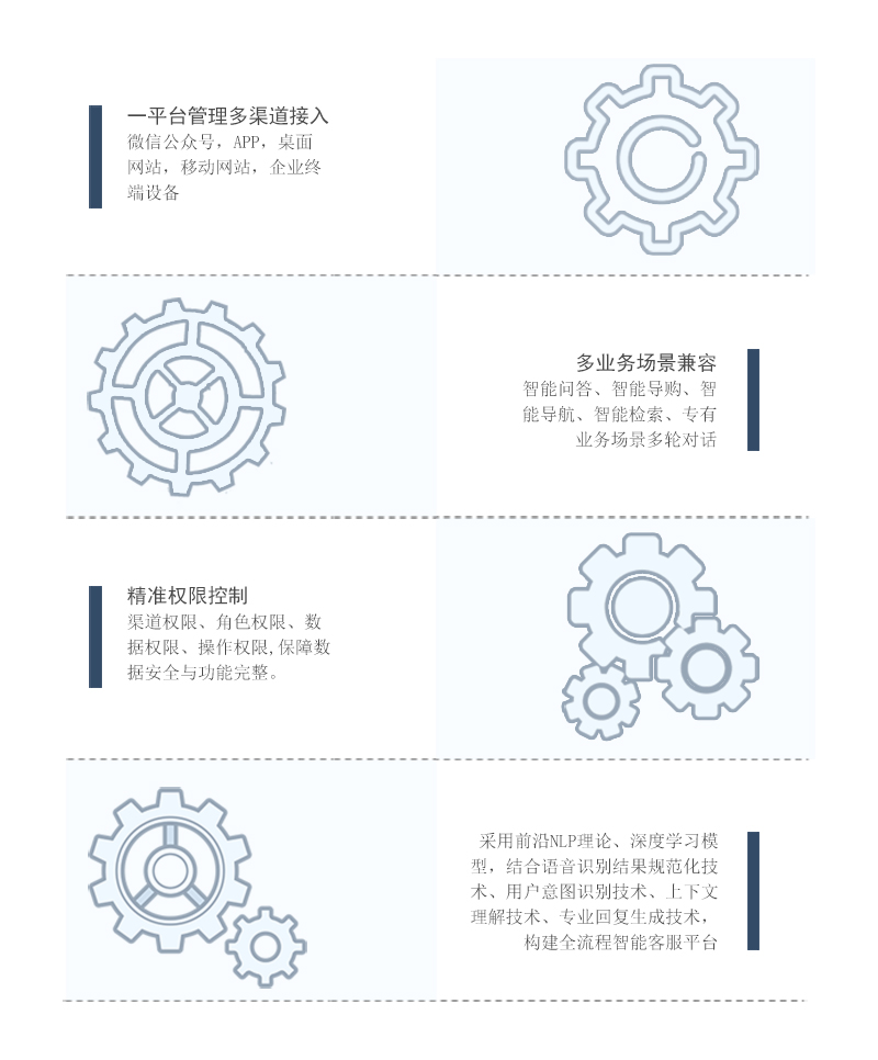 搭建多渠道、多角色、多場景、多形式的智能對話系統(tǒng),應(yīng)用于智能導(dǎo)購、智能問答、智能檢索、智能導(dǎo)航以及專有業(yè)務(wù)場景多輪對話中,準(zhǔn)確理解客戶意圖,改善人機交互模式,提升用戶操作體驗,賦能企業(yè)的服務(wù)能力升級、服務(wù)范圍升級、服務(wù)效果升級。
