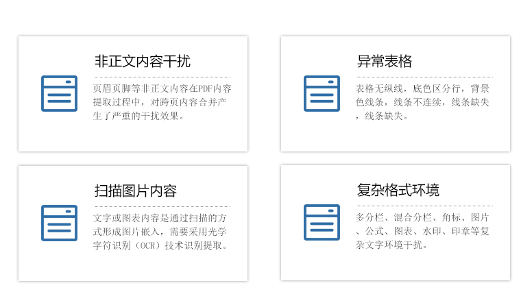 智能思創(chuàng)利用PDF讀取方法、圖形圖像處理方法和光學(xué)字符識(shí)別(OCR)方法,圍繞上述各個(gè)難點(diǎn),構(gòu)建創(chuàng)造性的解決方法流程,精準(zhǔn)高效的完成文檔內(nèi)容提取和再組織任務(wù),高準(zhǔn)確率的還原PDF原始內(nèi)容與格式。